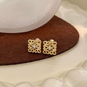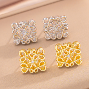 新しいファッショナブルでハイエンドのデザインの四角形パターンの中空イヤリング、絶妙な個性、軽い贅沢、シンプルで多用途な気質