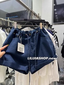 Thirteen Lines 2025 夏の新スタイル多用途ハイウエストデニム巾着弾性ワイドレッグパンツ女性のカジュアルショートパンツ