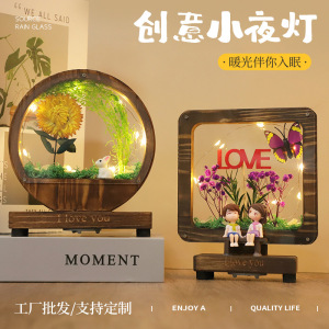 木製の卓上装飾品、文化的で創造的な工芸品、景勝地のプリザーブドフラワー、ドライフラワーブーケ、ナイトライト、木彫りランプ