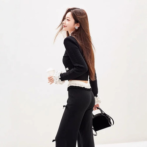 2025年初春の新デザイン水玉模様の耳付きニットセーターとハイウエストのほんのりフレアパンツ