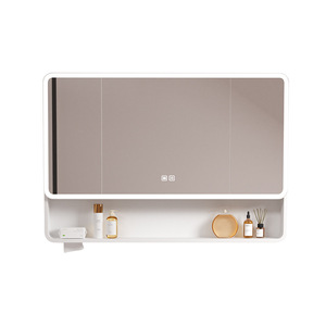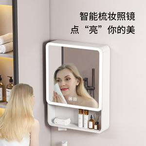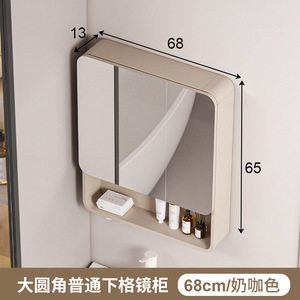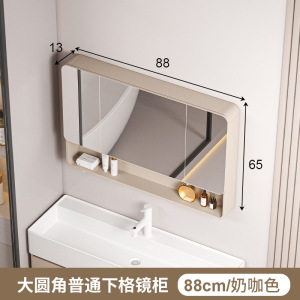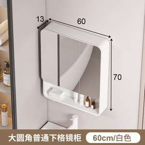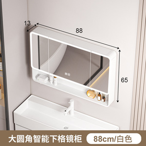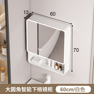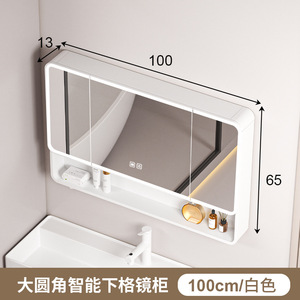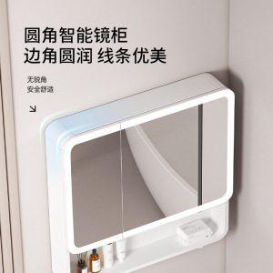 加厚太空铝圆弧智能镜柜卫生间带抽纸孔家用挂墙式美妆一体储物柜