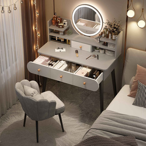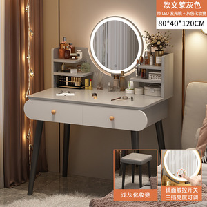 梳妆台卧室现代简约轻奢化妆台小户型网红化妆镜收纳一体化妆桌