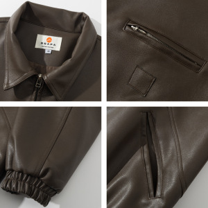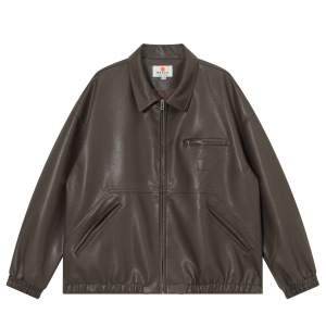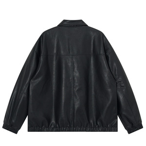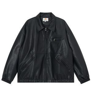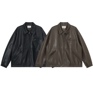 日系复古底特律多口袋工装外套男女宽松PU皮衣情侣休闲机车夹克潮