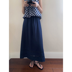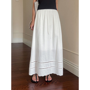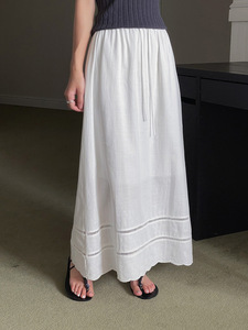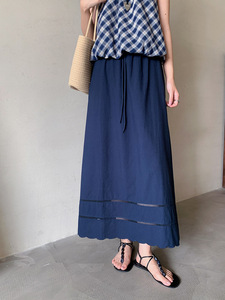【歌明】デザイン性の高いレースアップハイウエストスカート レディース 夏用 裾がくり抜かれたAラインミディスカート N363C