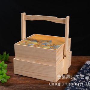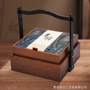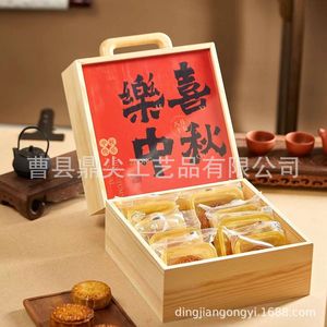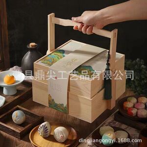 中国のポータブル二層木製月餅箱空のギフトボックス家庭用ギフト木箱単層天蓋月餅木箱
