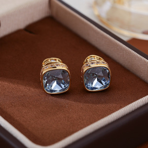 女性用フレンチレトロスクエアジルコンイヤリング、ファッショナブルな通勤、多用途の気質イヤリング、軽くて豪華で賢い2着用イヤリング