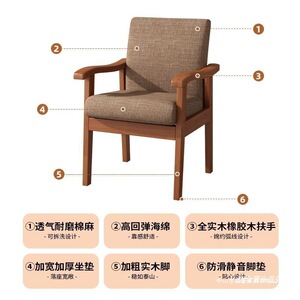 アームレスト付き無垢材ソファチェア、コンピュータチェア、デスクチェア、ホームバルコニー背もたれ椅子、B&Bバルコニー、レトロな怠惰なアームレスト