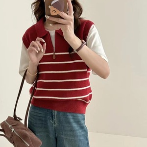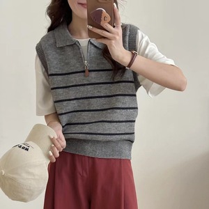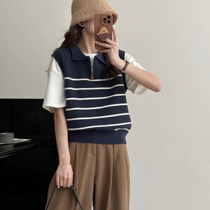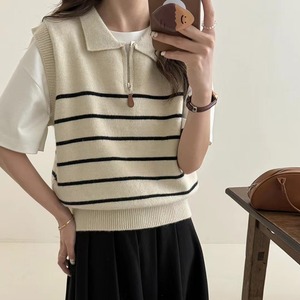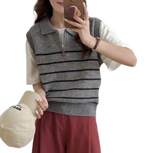 カレッジスタイルハーフジップストライプラペルニットベスト女性のための 2025 秋と冬レイヤードソフトワックス状スリムセーターベスト