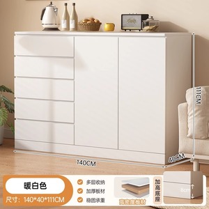 【防塵両開き5段引き出し】クリームホワイト 140×40×111CM(高密度複合板)