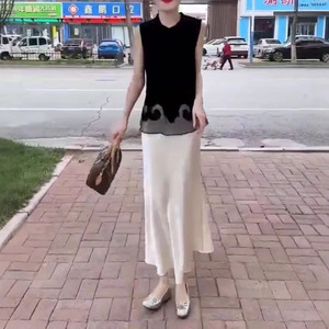 25735 新しい Daai Mei Yiyuan 2025 夏の新しいハイエンドノースリーブスプライシングトップハイウエストスカート痩身