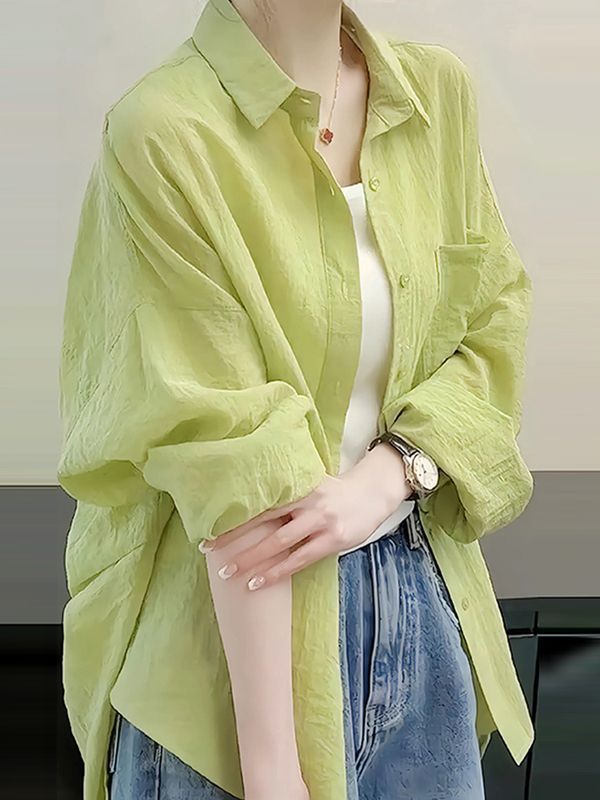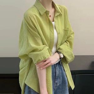 ミントマンボ抹茶グリーン日焼け止めシャツドーパミン少し太いライト高級ハイエンドトップ 2025 夏の新スタイル