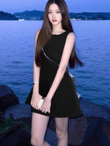 黒のノースリーブショートスカート【アップグレード生地】2025夏の新しいスタイル