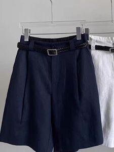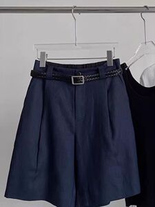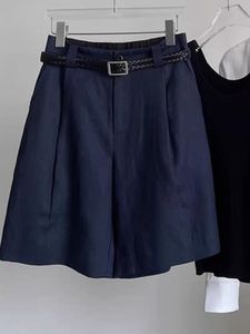CHAO级推荐!藏蓝色随性亚麻五分裤2025夏季高腰气质宽松休闲短裤