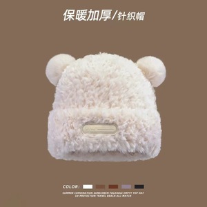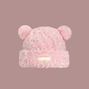 ニット帽クマぬいぐるみ女性の秋と冬暖かい模造毛皮プルオーバーウール帽子顔が小さく見える甘くてかわいい盆地帽子