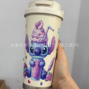 316不锈钢保温杯高颜值大容量女生吸管杯史迪仔新款水杯车载咖啡