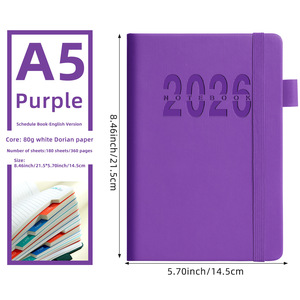 26 英語【縦柄ストラップ】欠品スケジュール帳-A5 パープル 320ページ