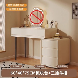 【梳妆台+三抽斗柜+拉手】奶油白80CM