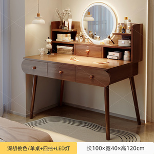 【四抽+实木梳妆凳+Led灯】深胡桃色100CM