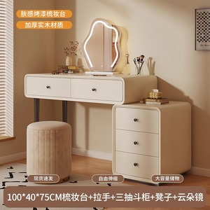 【梳妆台+三抽斗柜+凳子+拉手+云朵镜】奶油白100CM