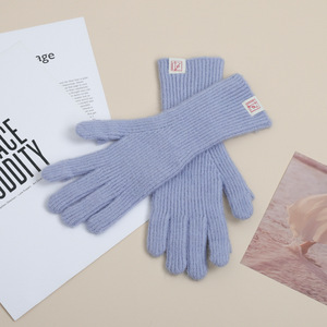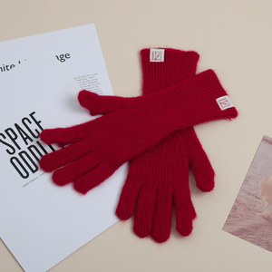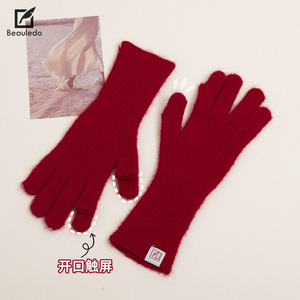 冬季可爱毛线针织韩国贴标冬天氛围感红色羊毛手套分指露指可触屏