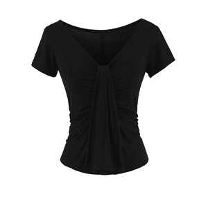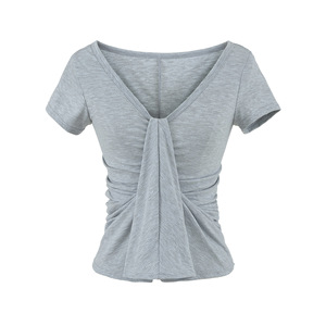 優しい気質カモメ V ネックストラップ半袖 T シャツ女性の綿純粋な欲望の気質デザインスリムプリーツトップ夏