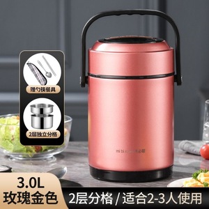 三层保温桶3.0L【玫瑰金】+餐具3件套@