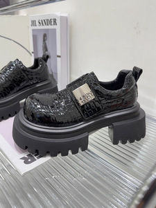 欧洲站女鞋2025春季新款松糕厚底乐福鞋魔术贴英伦风漆皮懒人鞋潮