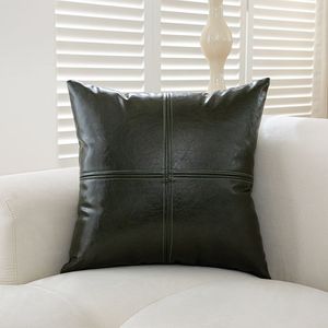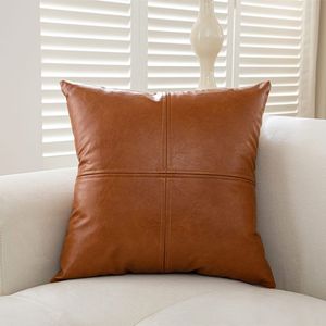 抱枕客厅沙发轻奢高级感油蜡皮靠背靠垫仿真皮车载腰靠枕抱枕枕头