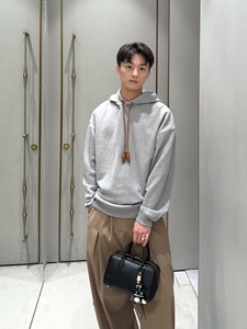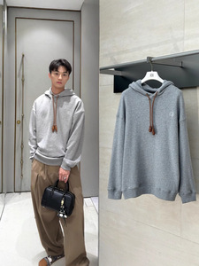 天井品質 25S トレンディな新しい LOW レザー刺繍フード付きスウェットシャツ男性と女性のための同じスタイルのレザーロープフード付きスウェットシャツ