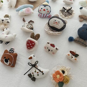 韓国版の新しい子供の漫画生地コサージュ小動物ブローチ甘くてかわいいクマウサギ綿入りアクセサリー女性用