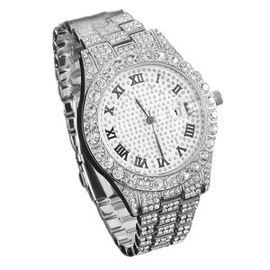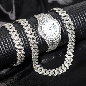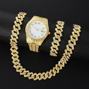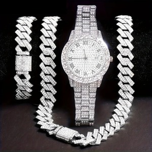ファッションウォッチギフトギフトダイヤモンドヒップホップウォッチブレスレットネックレスセットクォーツ時計セット 3 ピース/セット