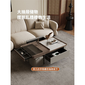 多機能収納可能な長方形のコーヒーテーブルリビングルームホーム2024新しいイタリアンスタイルのライト高級ロックプレートコーヒーテーブルの組み合わせ