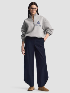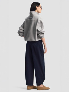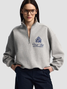 跨境外贸秋冬女装复古字母刺绣半开领上衣宽松休闲运动半拉链卫衣