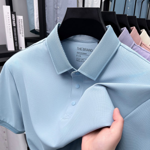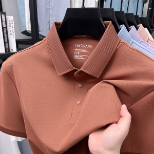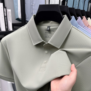 30代の秋の中年男性の軽くて大人なカジュアルな高弾性ナイロン密針スポーツサマーラペルTシャツ