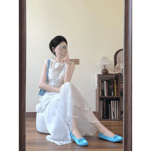 フランスのユニークで美しい中空の白いドレス女性の夏の新しいスタイルの小さな気質ウエスト休暇ロングスカート