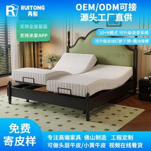 フレンチレトロスマートベッド自動ウェイクアップ電動ベッドアッシュマスターベッドルームアメリカンリフティング1.8ダブルファブリックベッド