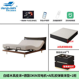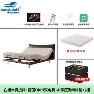 デュアルモーター[Mijia]第一層牛革ベッド+スプリングラテックスマットレス+キャビネット1台