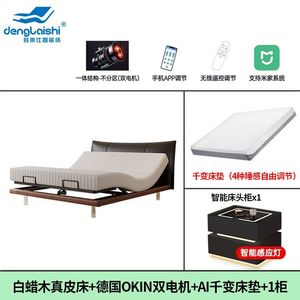 デュアルモーター[Mijia]第一層牛革ベッド+AI可変マットレス+キャビネット1台