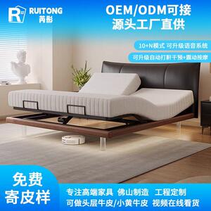 中世スタイルの多機能 Mijia コントロールスマートベッドマスターベッドルームクイーンベッドダブルベッドパーティションリフティングレザーベッド電動