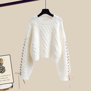 大码女装秋冬季套装2025新款加厚马甲百搭针织毛衣阔腿裤三件套
