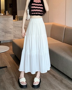 ドレープ感 2024 小柄ハイウエストレディースアンブレラスカート ブラック ミドル丈スカート 新作 ホワイト Aラインスカート 夏