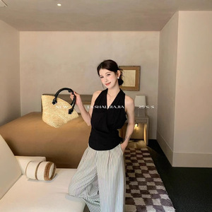 法式V领交叉无袖衬衫女夏季薄款收腰设计感小众洋气小衫挂脖上衣