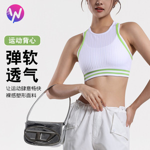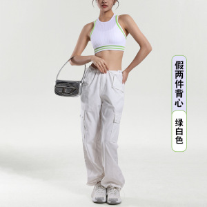 撞色拼接假两件运动背心女外穿时尚速干透气瑜伽跑步健身内衣弹力
