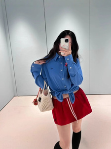 南油M家谬风25春夏衬衫长袖刺绣logo翻领纽扣开衫单排扣立体刺绣
