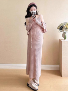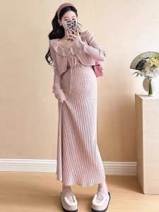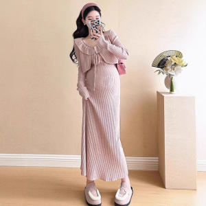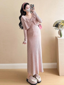 2025秋冬新款孕妇装两件套吊带加荷叶边外套软糯亲肤宽松套装裙