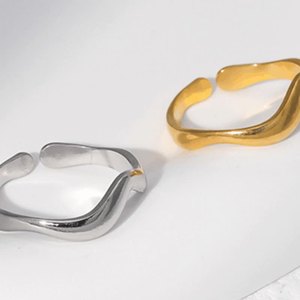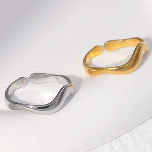 ヨーロッパとアメリカのステンレス鋼リング女性のためのシンプルな波状チタン鋼オープン電気メッキインコールド風景オープンハンドジュエリー