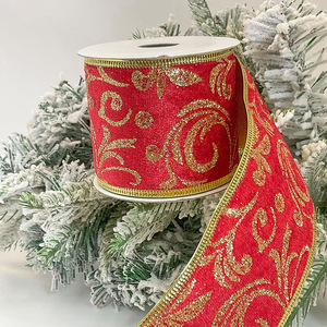 圣诞印刷烫金银雪花仿麻丝带圣诞节日礼物包装饰品背景墙挂顶织带