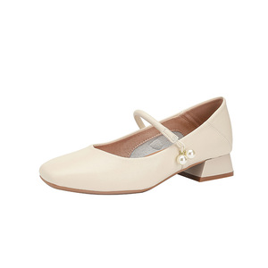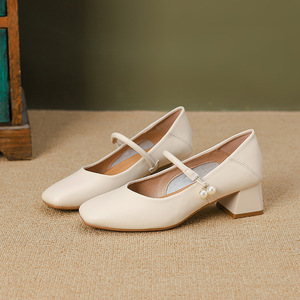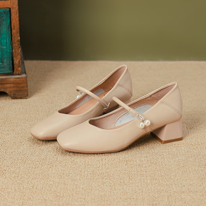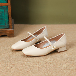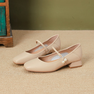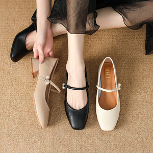 2025新款法式低跟方头杏色玛丽珍鞋气质旗袍单鞋工作皮鞋通勤女鞋