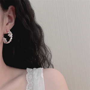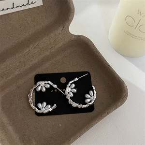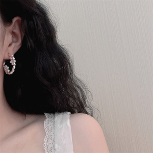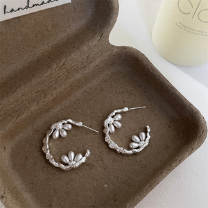 シンプルなニッチなシルバーの質感のC型パールイヤリング、女性用、ハイエンド、ファッショナブルで多用途なイヤリング