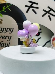 紫色の風船を 3 つ抱えた泣いている赤ちゃん